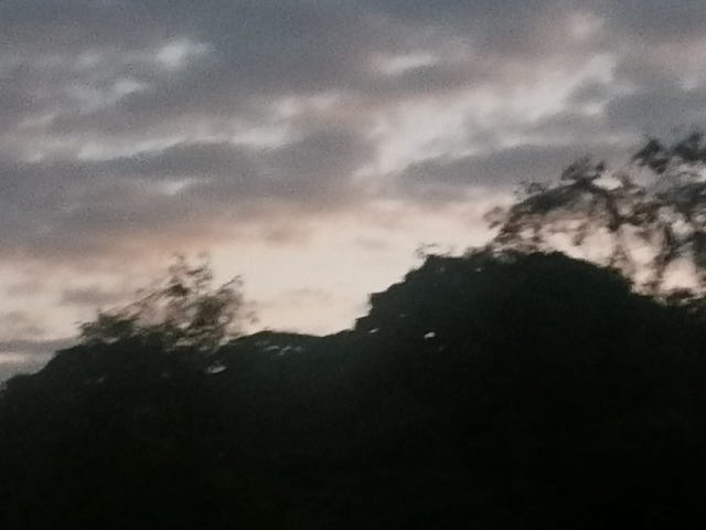 天仍暗暗,山上景物在燈光照射,似是深海珊瑚。雲說:雲也被寫作雲海,順理成章,就是雲海裡的珊瑚…… |
