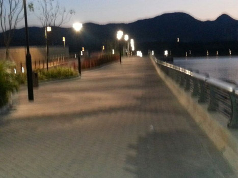 去年十月底;將軍澳海濱花園的早晨很靜,附近民眾仍未知道這兒開放了。 拿起手機拍下將成絕唱景色,無人無聲無廢物的長廊,路燈彷似聚集成球的瑩火,排列成參差錯落隊伍,讓四野無人的海濱活潑起來。 照片是這兒剛啟用拍的,清晨靜寂無人,如今此情不再,換來是:你自那方來,我從這方去! |
