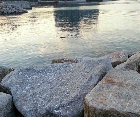 清晨;天仍未亮,看腕表時間正好搭正五時三十分。 沿海濱漫步,橫看高樓在乍明乍暗當兒,顯出一種穩重平和象景。