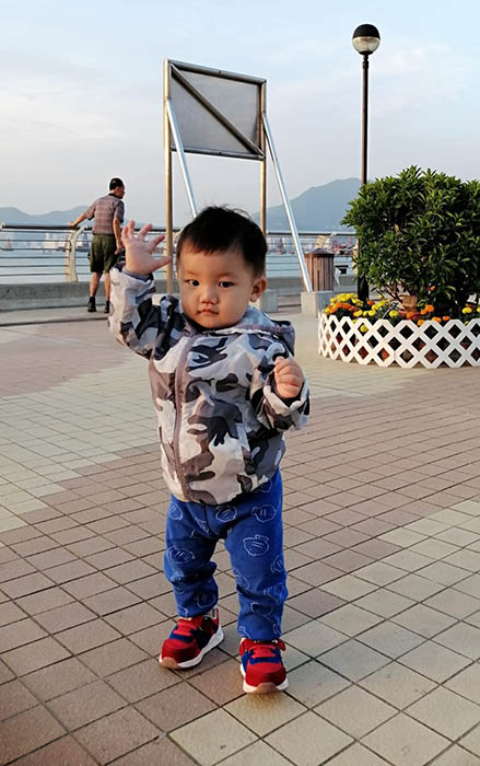 小妞兒年方十一個月,倒有一份從容意態,把途人吸引,她用笑容答謝…… | |