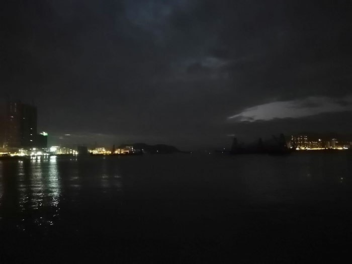 | 黑夜將盡,四周仍然在睡夢中,天與海同色,幸得遠方燈光投射,微滲出深秋寒意,看海洋泛影,「夜涼如水」氣象,活脫從容冒出! |