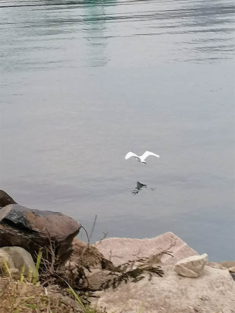 水——安靜的,石——安靜的,一隻白色候鳥貼海低飛! | |