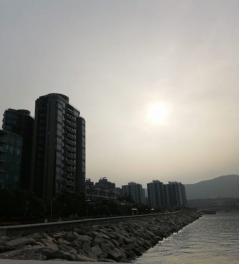 身處對岸樓宇棟棟,這兒住宅商舖林立,好不輝煌。如今站在另一邊岸,啊!一切只是大地丁點一角。 | |
