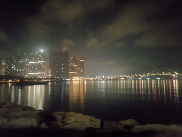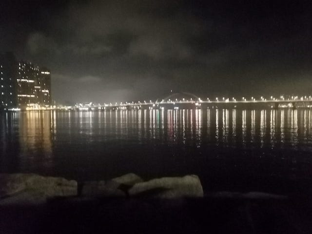 長橋燈光投射於汪洋大海,化成靈動有聲的串串晶光…… | |