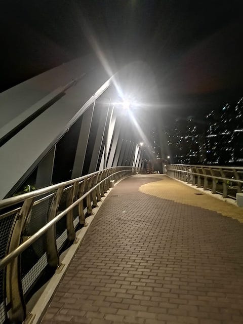 天未亮,長橋靜候多時仍不見人影;細看它,結構扎實,讓過橋人舉步安心。 |
