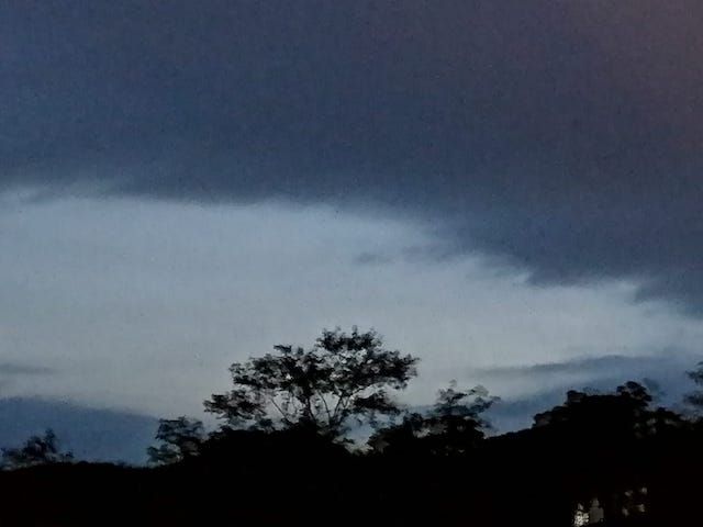 天未亮,幾陣涼意,黑雲當空,竟然為山頭綠樹留一片白…… | |